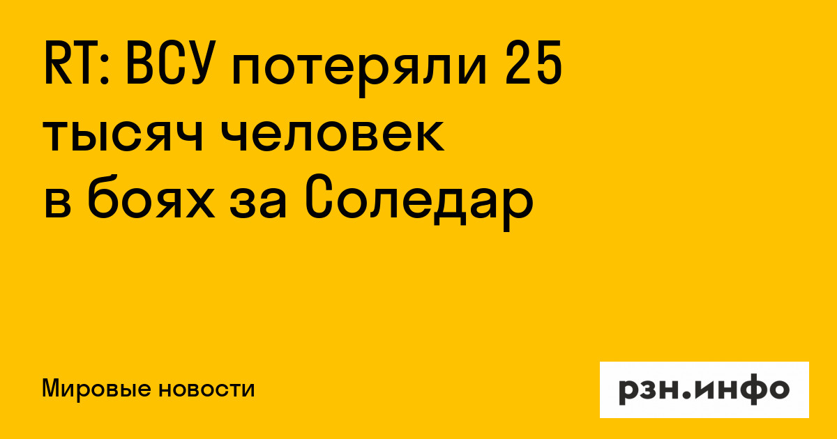 RT: ВСУ потеряли 25 тысяч человек в боях за Соледар