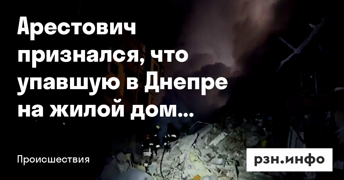 Советник офиса украинского президента Алексей Арестович признал, что упавшая на девятиэтажный дом в Днепре ракета была сбита системой противовоздушной обороны Украины.