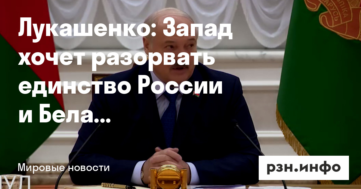 Президент Александр Лукашенко заявил, что Запад хочет разорвать единство России и Беларуси. Об этом пишет .