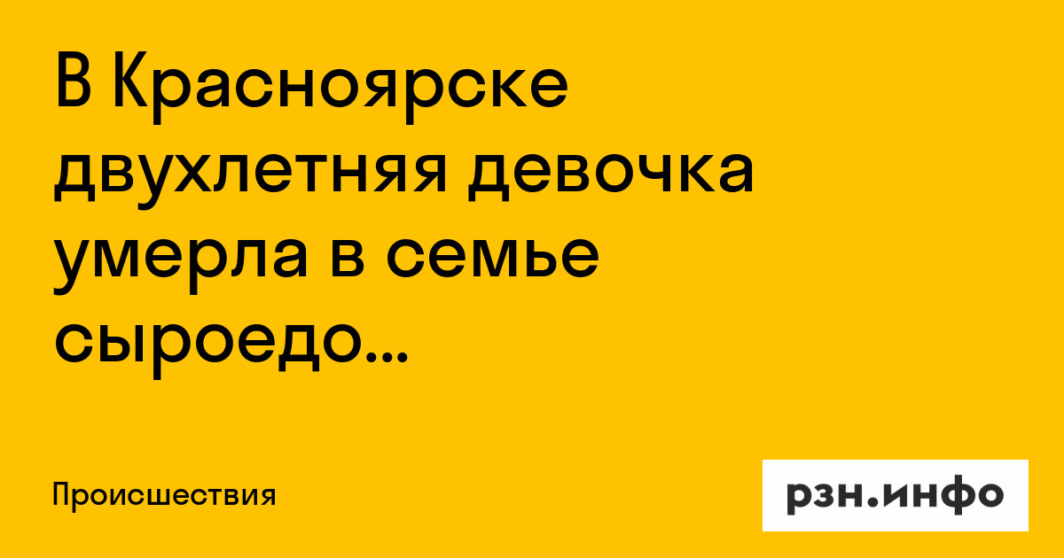 В Красноярске двухлетняя девочка умерла в семье сыроедов