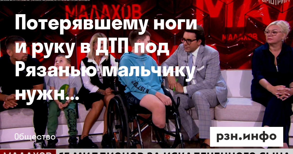 Потерявшему ноги и руку в ДТП под Рязанью мальчику нужно еще 15 миллионов на протезы. Об этом сообщили в эфире программы «Малахов» на телеканале «Россия 1».