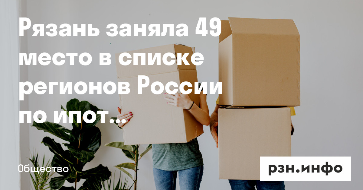 РИА Рейтинг список регионов России по ипотечным платежам. Рязанская область расположилась на 49 месте.
