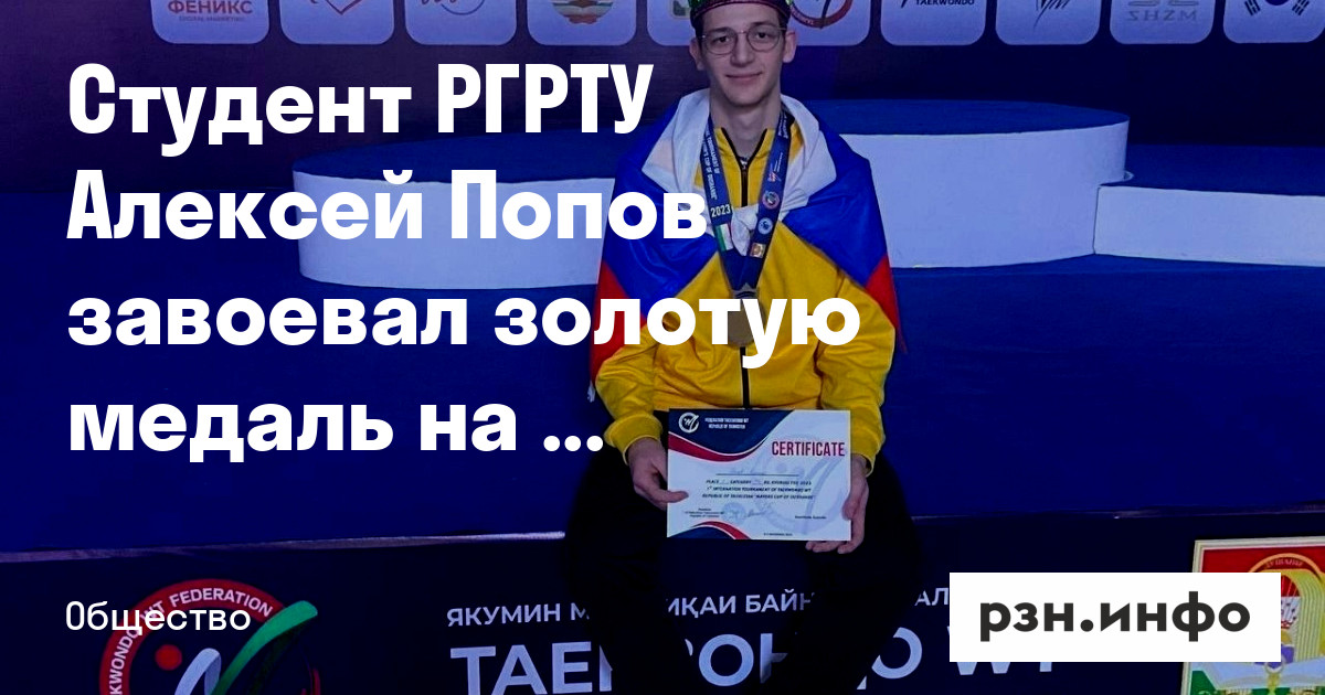 Студент РГРТУ Алексей Попов завоевал золотую медаль на Международном турнире по тхэквондо. Об этом сообщает пресс-служа ВУЗа.