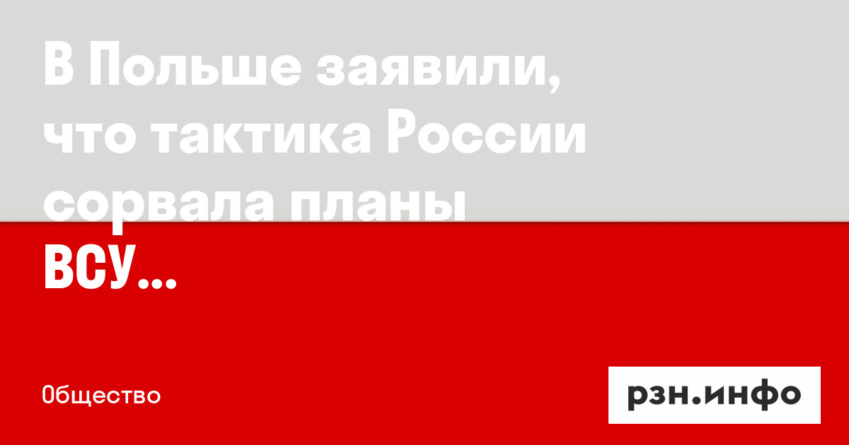 В Польше заявили, что тактика России сорвала планы ВСУ на запорожском направлении