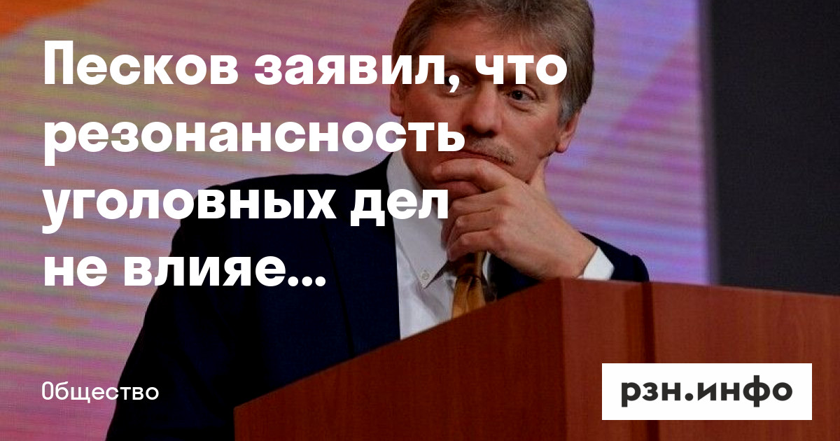 «Существует определенная практика, которая реализуется, и, насколько мне известно, в этой практике никаких исключений нет. Точнее, есть исключения, но они не касаются темы резонансности того или иного дела», — заявил Песков.