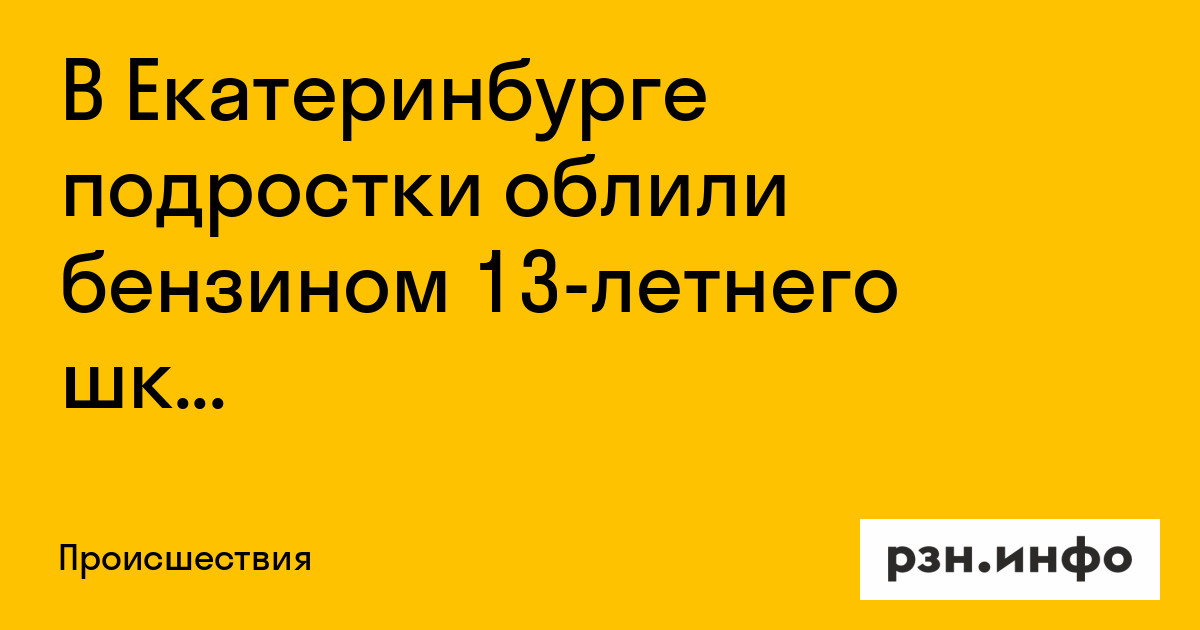 В Екатеринбурге подростки облили бензином 13-летнего школьника и подожгли