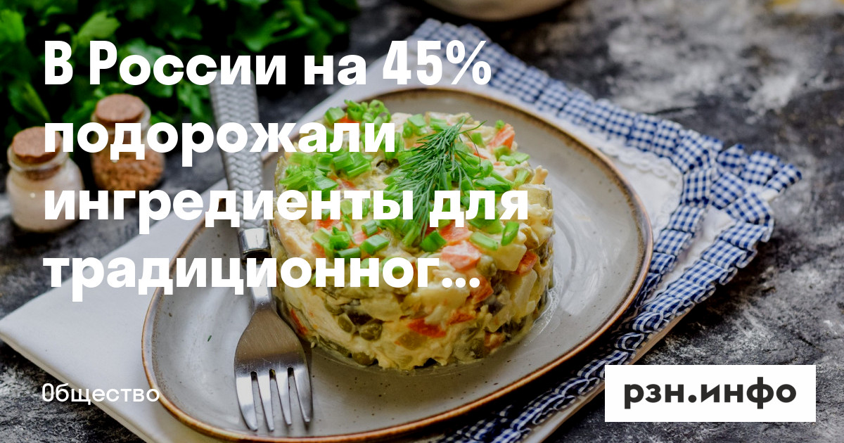 В России на 45% подорожали ингредиенты для салата «Оливье». Об этом сообщает Mash.