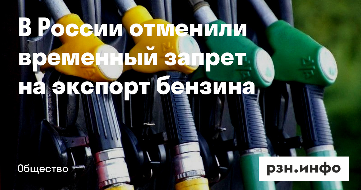 В России отменили временный запрет на экспорт бензина. Об этом пишет ТАСС.