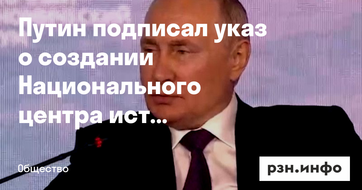 Президент России Владимир Путин подписал указ об учреждении Национального центра исторической памяти. Документ опубликован на официальном портале правовой информации.