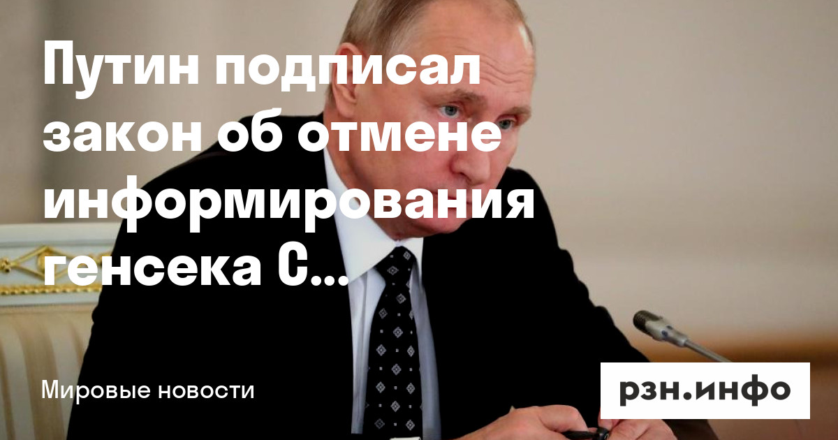 Президент России Владимир Путин подписал закон об отмене информирования генсека Совета Европы при введении военного или чрезвычайного положения. Об этом сообщило .