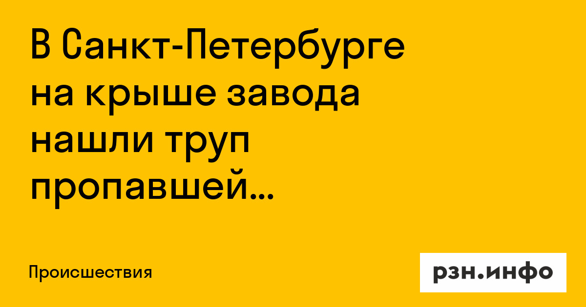 В Санкт-Петербурге на крыше завода нашли труп пропавшей девушки