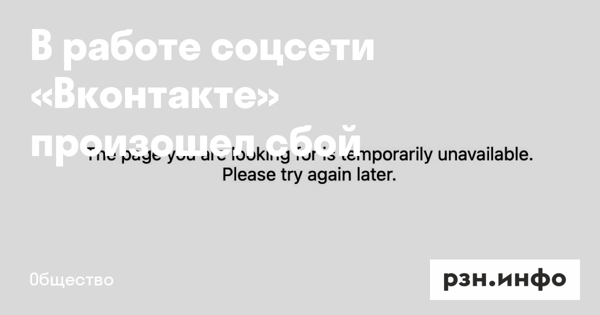 В работе соцсети «Вконтакте» произошел сбой. В этом убедился корреспондент РЗН.инфо.