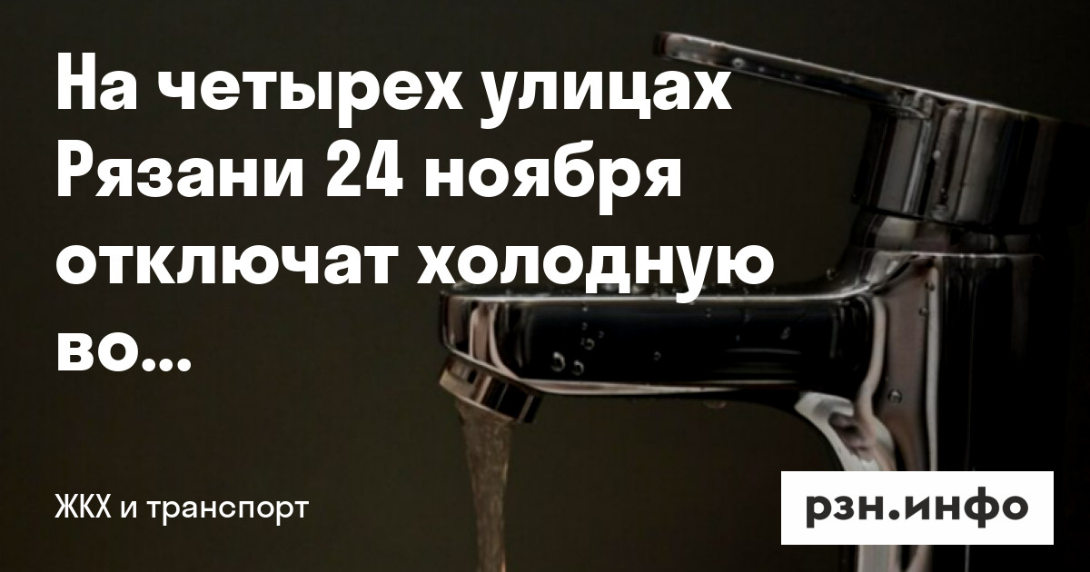 На четырех улицах Рязани 24 ноября отключат холодную воду. Об этом сообщили на сайте мэрии.