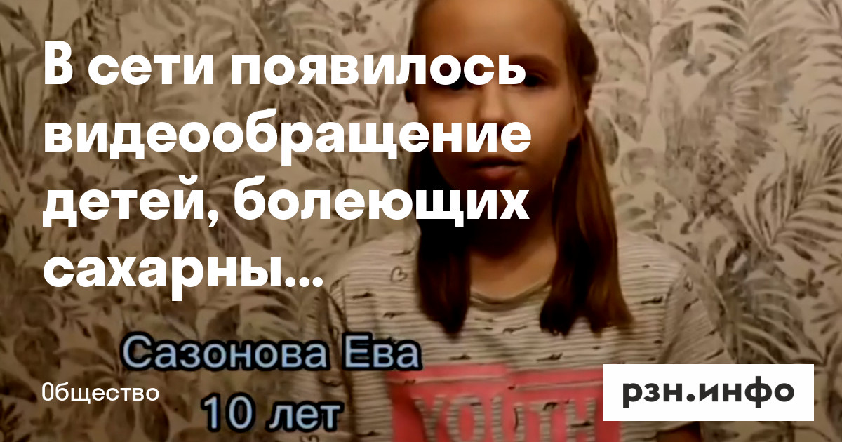 Опубликовано видеообращение детей с сахарным диабетом к губернатору и рязанскому минздраву. Его опубликовала рязанка Александра Сазонова.