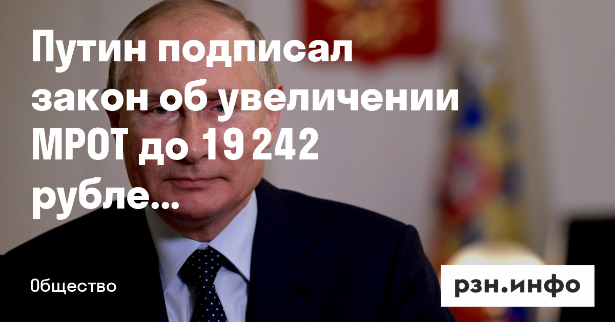 Путин подписал закон об увеличении МРОТ до 19 242 рублей