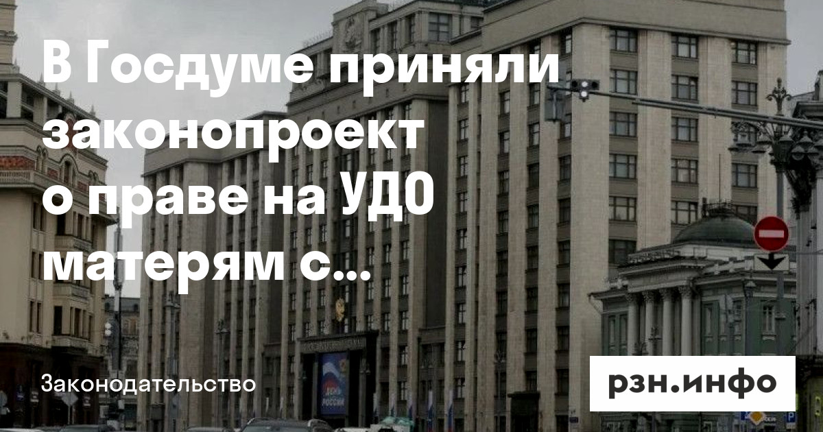 В Госдуме приняли законопроект о праве на УДО матерям с детьми до четырех лет