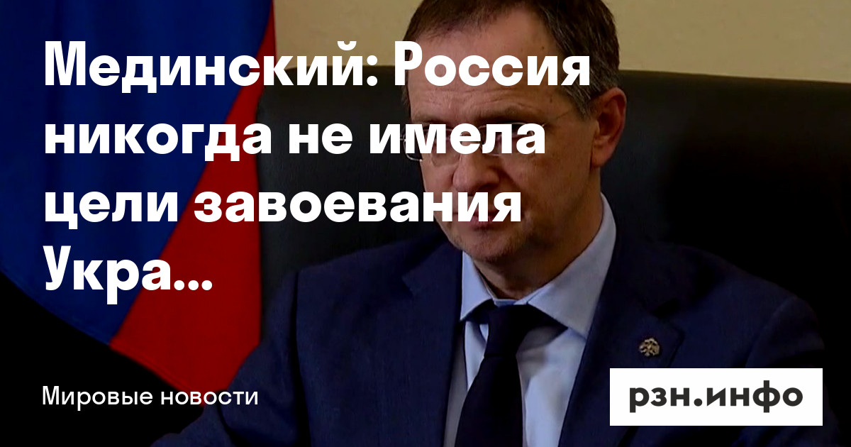 Помощник президента РФ Владимир Мединский заявил, что Россия никогда не имела цели завоевания Украины, это Запад и Владимир Зеленский развязали полномасштабные боевые действия. Его цитирует ТАСС.