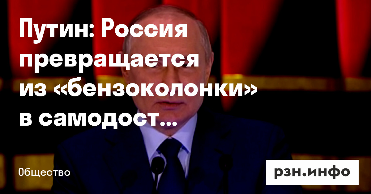 Путин: Россия превращается из «бензоколонки» в самодостаточную страну с перерабатывающим производством