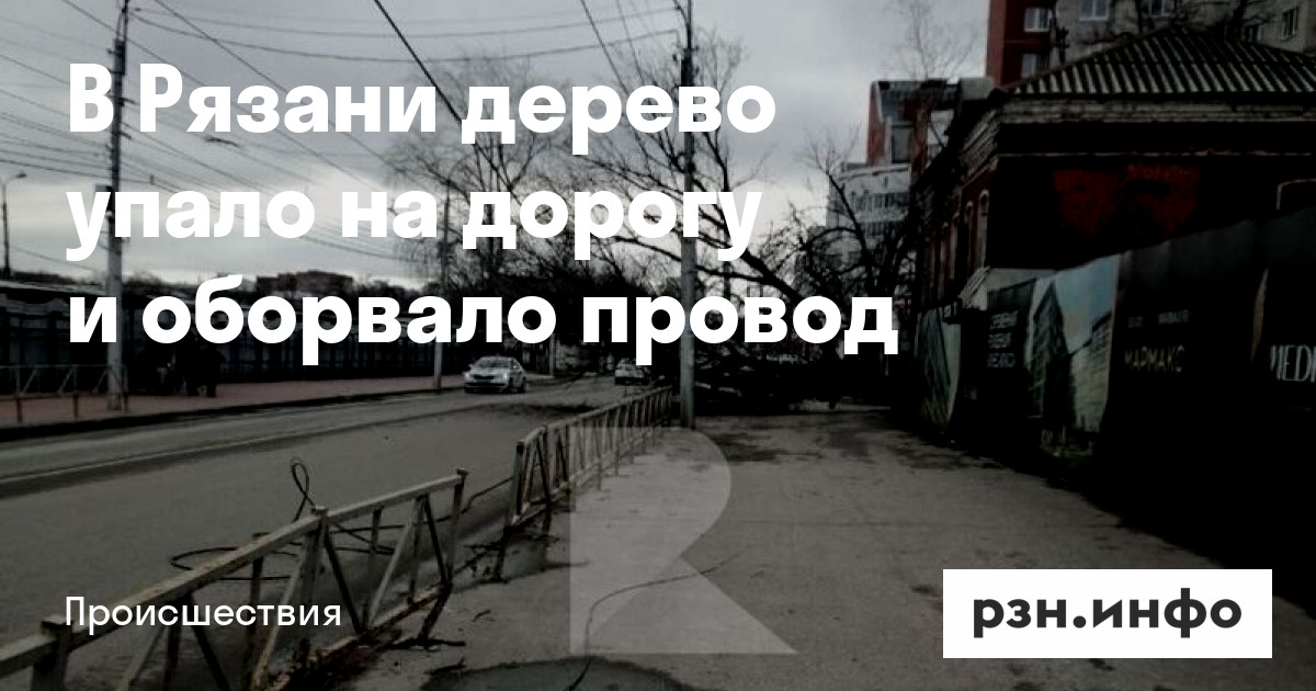 В Рязани дерево упало на дорогу и оборвало провод