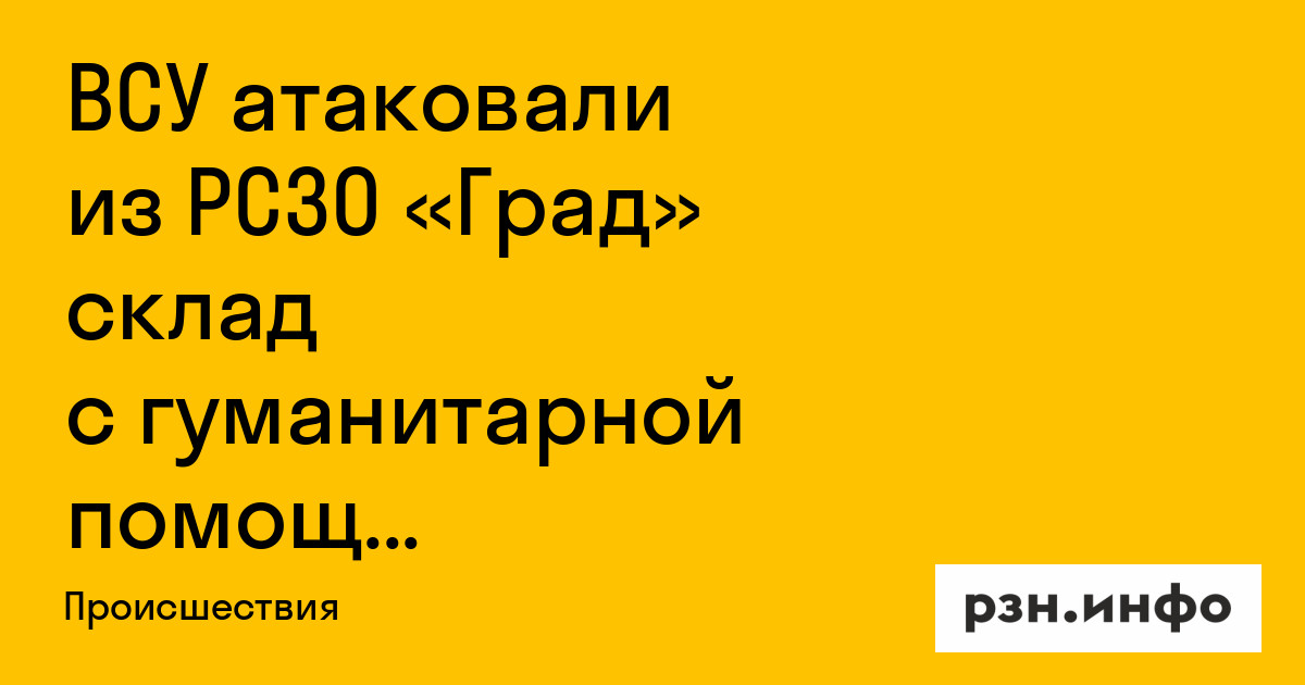 ВСУ атаковали из РСЗО «Град» склад с гуманитарной помощью в Белгородской области. Об этом сообщает Mash.