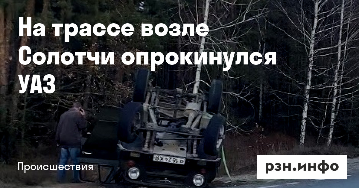 На автодороге Р-132 «Золотое кольцо» в районе Солотчи на обочине перевернулся УАЗ. Фото и видео с места аварии опубликованы в группе «Подслушано у водителей Рязани».