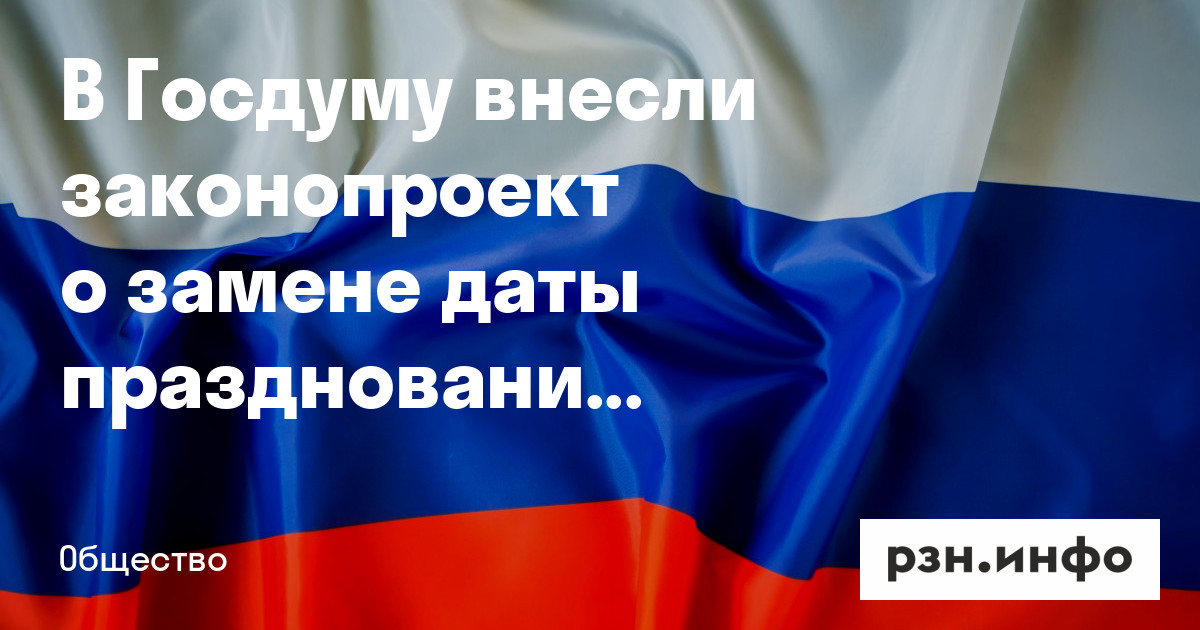 В Госдуму внесли законопроект о замене даты празднования Дня России. Об этом сообщает РИА Новости.