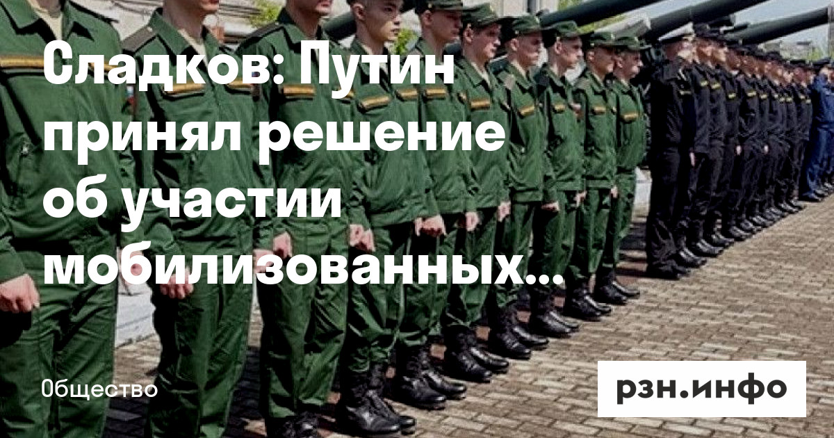 Сладков: Путин принял решение об участии мобилизованных в СВО до ее окончания