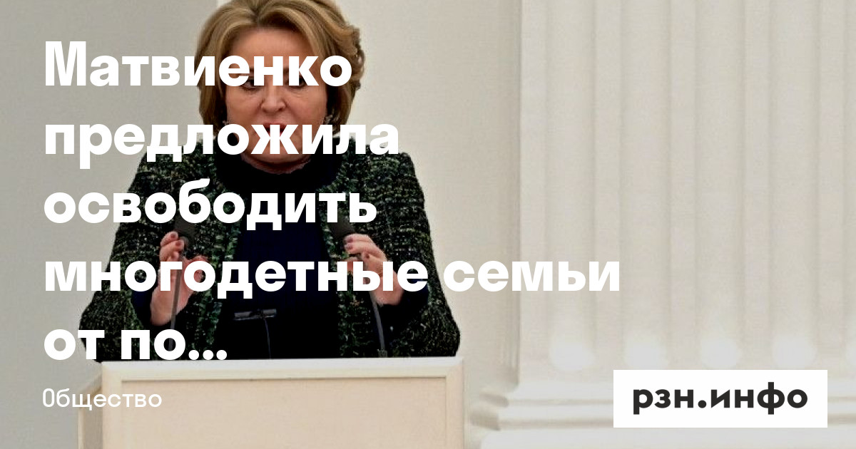 Председатель Совета Федерации Валентина Матвиенко предложила освободить от НДФЛ многодетные семьи. Об этом сообщило .