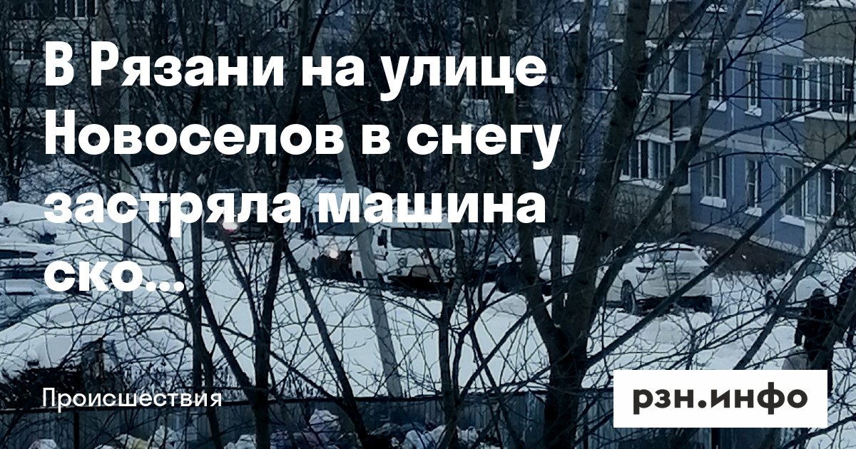 В Рязани на улице Новоселов в снегу застряла машина скорой помощи