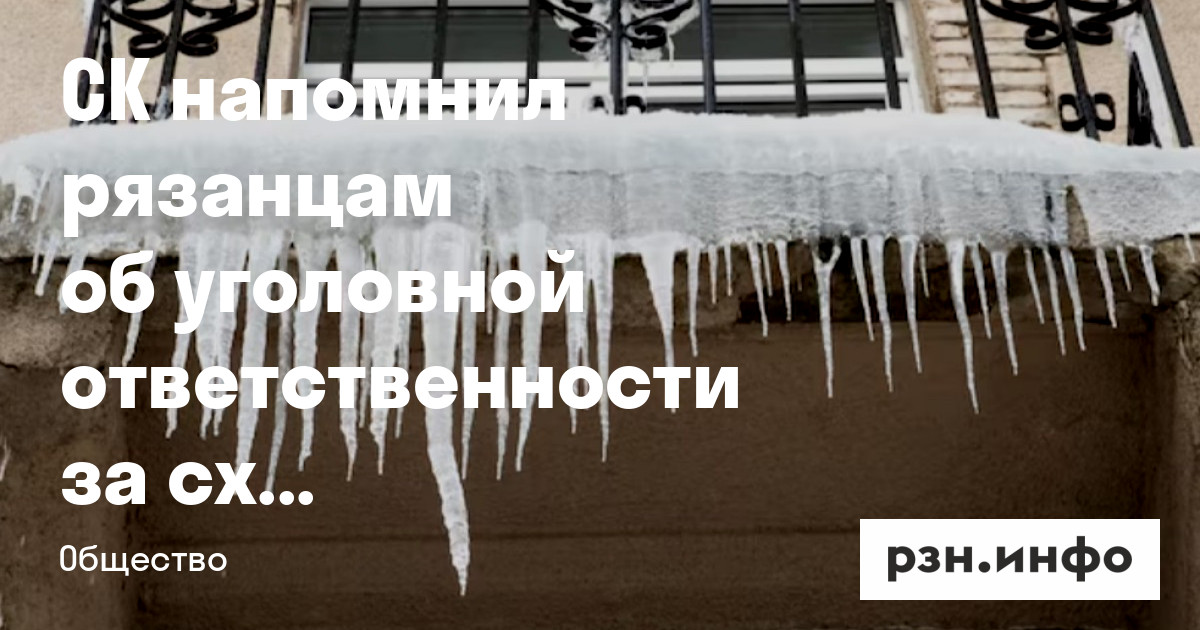 СК напомнил рязанцам об уголовной ответственности за сход наледи с крыш на людей. Сообщение появилось в официальной Telegram-канале регионального ведомства.