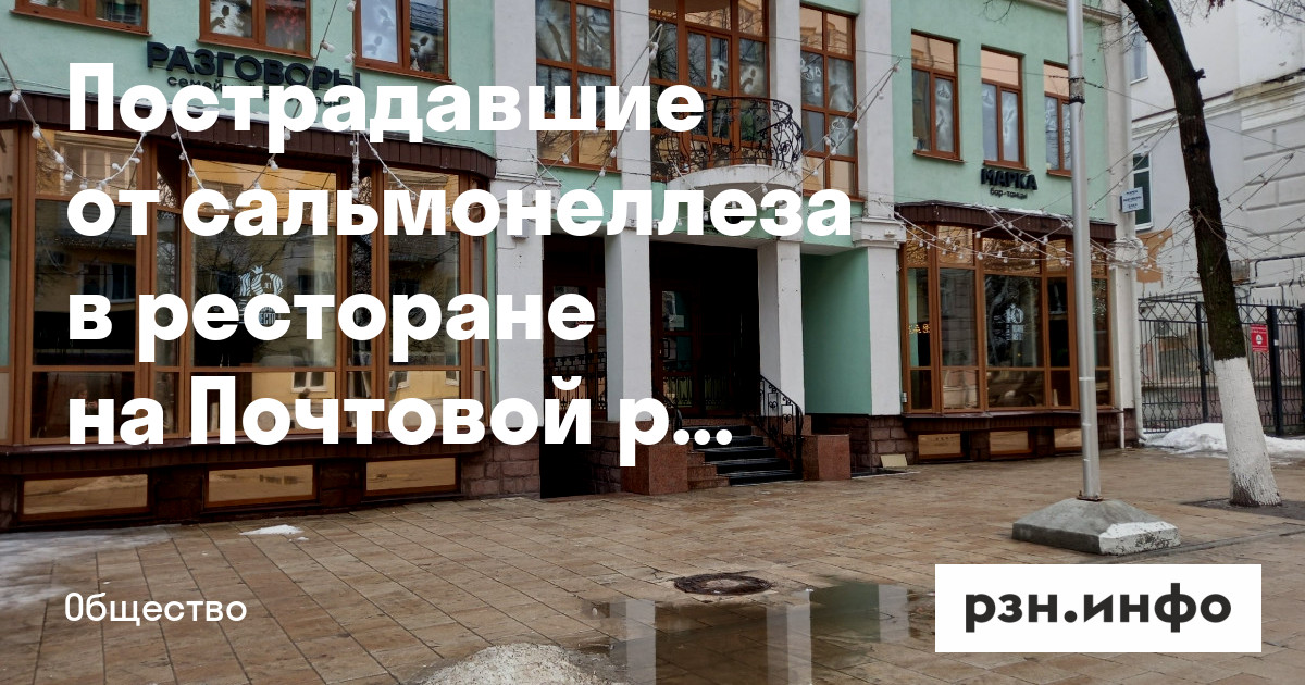 В редакцию РЗН. инфо обратился один из пострадавших и рассказал, что заболел сальмонеллезом после посещения ресторана «Елки» на улице Почтовой (В здании ресторана находятся три заведения — «Елки», «Разговоры» и «Марка» — прим.ред.).
