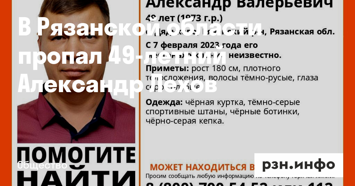 В Рязанской области пропал 49-летний Александр Лехов. Об этом сообщили волонтеры поисково-спасательного отряда «ЛизаАлерт» во вторник, 14 февраля.
