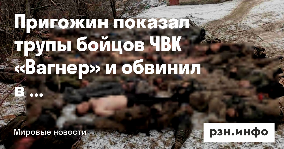 Основатель ЧВК «Вагнер» Евгений Пригожин опубликовал фото трупов бойцов и обвинил в их гибели главу Минобороны Сергея Шойгу и начальника генштаба ВС России Валерия Герасимова. Об этом в среду, 22 февраля, сообщила пресс-служба главы ЧВК.