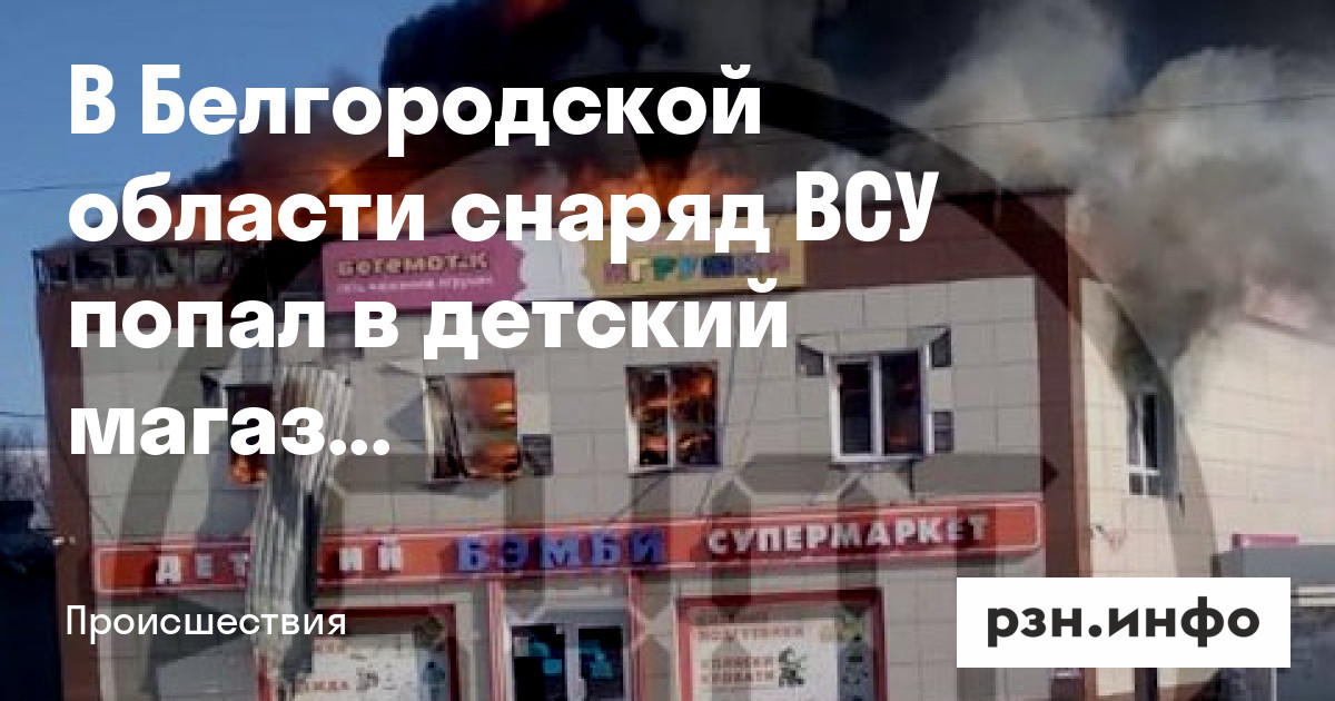 Сообщается, что ЧП произошло в детском магазине «Бэмби» в Шебекине. После того, как снаряд попал в здание, произошел пожар.
