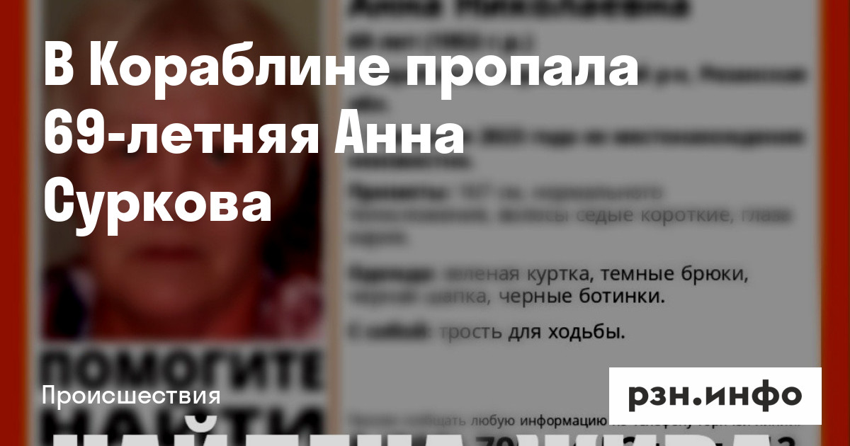 В Кораблине пропала 69-летняя Анна Суркова. Ориентировку на поиск женщины в воскресенье, 5 февраля, опубликовал поисково-спасательный отряд «Лиза Алерт».