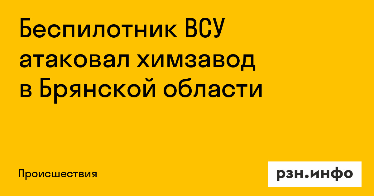 Беспилотник ВСУ атаковал химзавод в Брянской области
