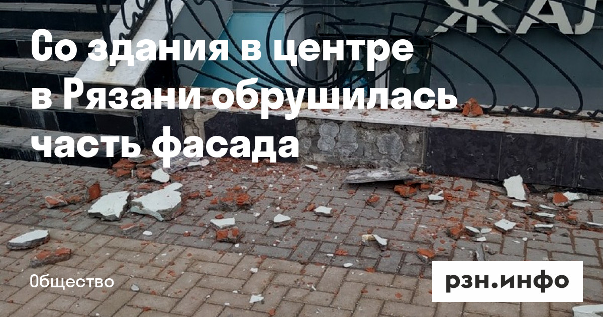 Со здания в центре в Рязани обрушилась часть фасада