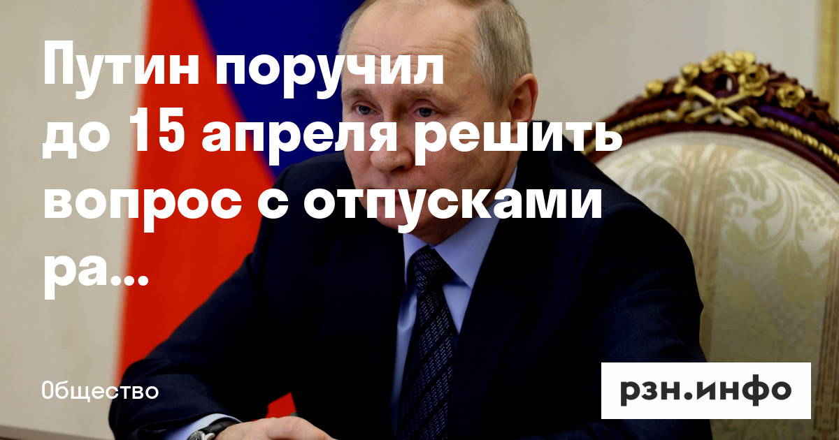 Президент Владимир Путин поручил до 15 апреля решить вопрос с отпусками раз в полгода для всех участников спецоперации. Об этом говорится в опубликованном на сайте Кремля распоряжении по итогам послания Федеральному собранию от 21 февраля.