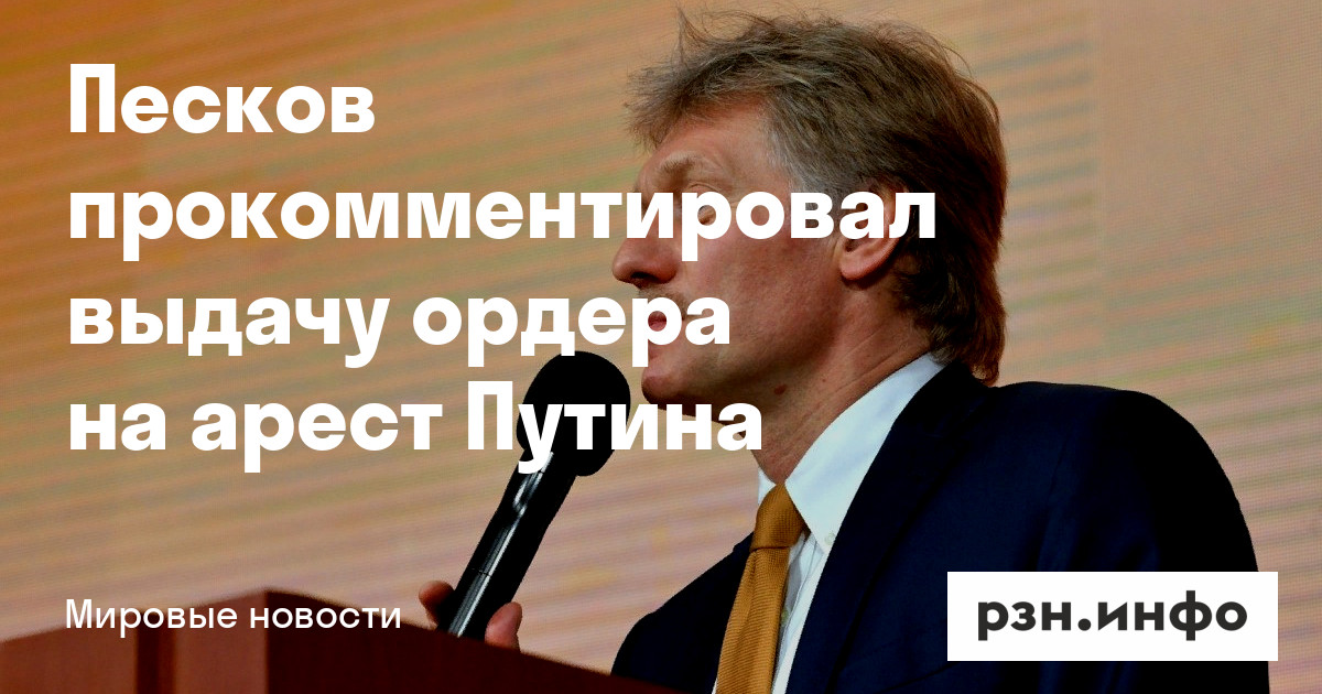 Песков прокомментировал выдачу ордера на арест Путина. Об этом в пятницу, 17 марта, пишет ТАСС.