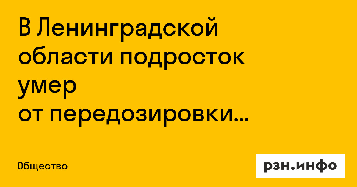 В Ленинградской области подросток умер от передозировки неизвестным веществом. Об этом сообщил .