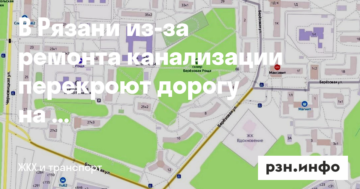 В Рязани из-за ремонта канализации перекроют дорогу на улице Березовой