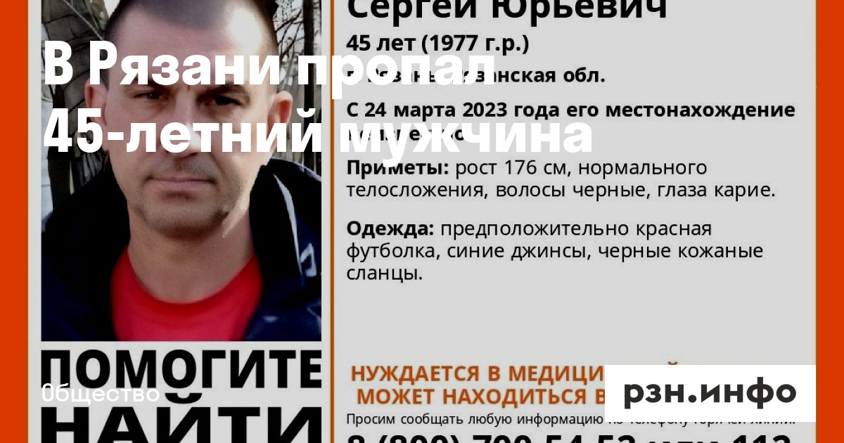 В Рязани разыскивают Сергея Юрьевича Костюкова 1977 года рождения. С 24 марта его местонахождение неизвестно. О поисках сообщили волонтеры ПСО