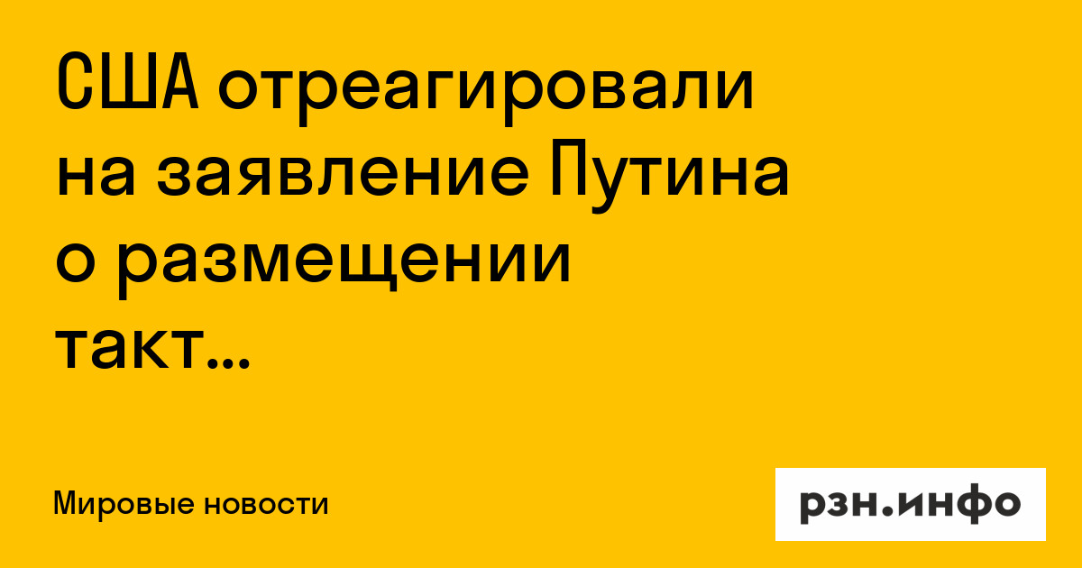Администрация Соединенных Штатов отреагировала на заявление президента России Владимира Путина о размещении в Белоруссии российского тактического ядерного оружия. Об этом пишет ТАСС.