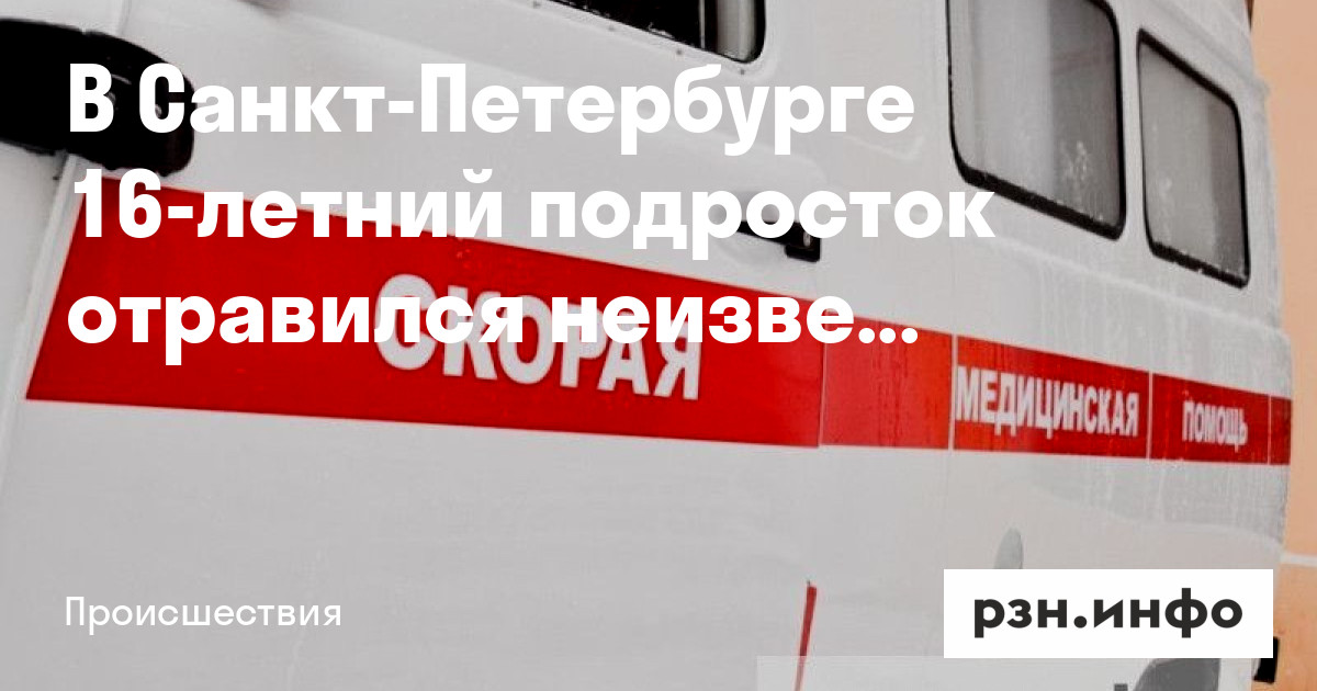 В Санкт-Петербурге 16-летний подросток отравился неизвестным веществом. Об этом сообщила «».