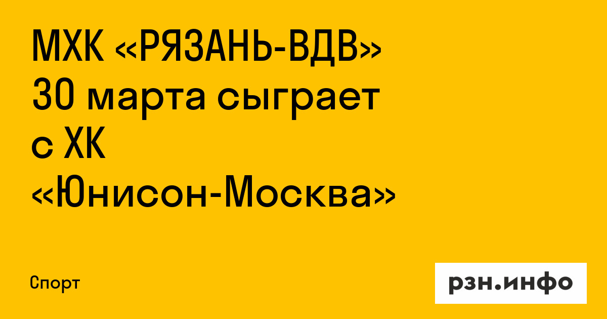 МХК «Рязань-ВДВ» 30 марта сыграет с ХК «Юнисон-Москва»