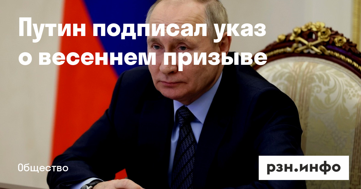 Президент России Владимир Путин подписал указ о весеннем призыве. Документ опубликован на официальном интернет-портале правовой информации.