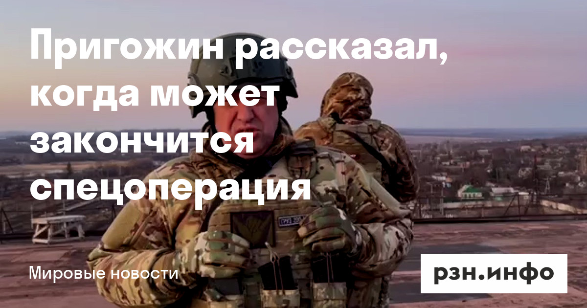 Евгений Пригожин рассказал, когда может закончится спецоперация. Слова основателя ЧВК «Вагнер» приводит его пресс-служба. К ней поступил запрос от журналистов, которые вспомнили прогноз Пригожина, что полное освобождение республик Донбасса может занять два года, а если идти до Днепра, то около трех. Корреспонденты спросили, как сейчас Пригожин оценивает свои слова и может ли спецоперация закончится раньше.