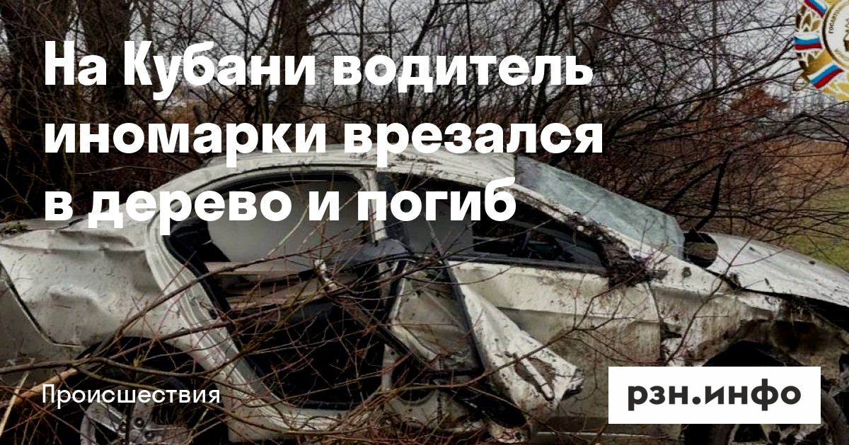 На Кубани водитель иномарки врезался в дерево и погиб. Об этом в понедельник, 6 марта, «Кубанские новости».