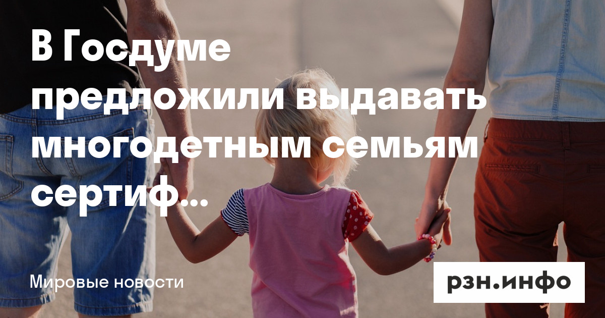 Автор инициативы — первый зампред комитета Госдумы по просвещению Яна Лантратова. Сертификат в один млн рублей она предложила выдавать российским семьям с четырьмя и более детьми.