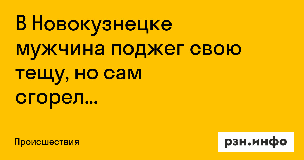 В Новокузнецке мужчина решил поджечь свою тещу, но сгорел заживо сам. Об этом сообщил Telegram-канал .